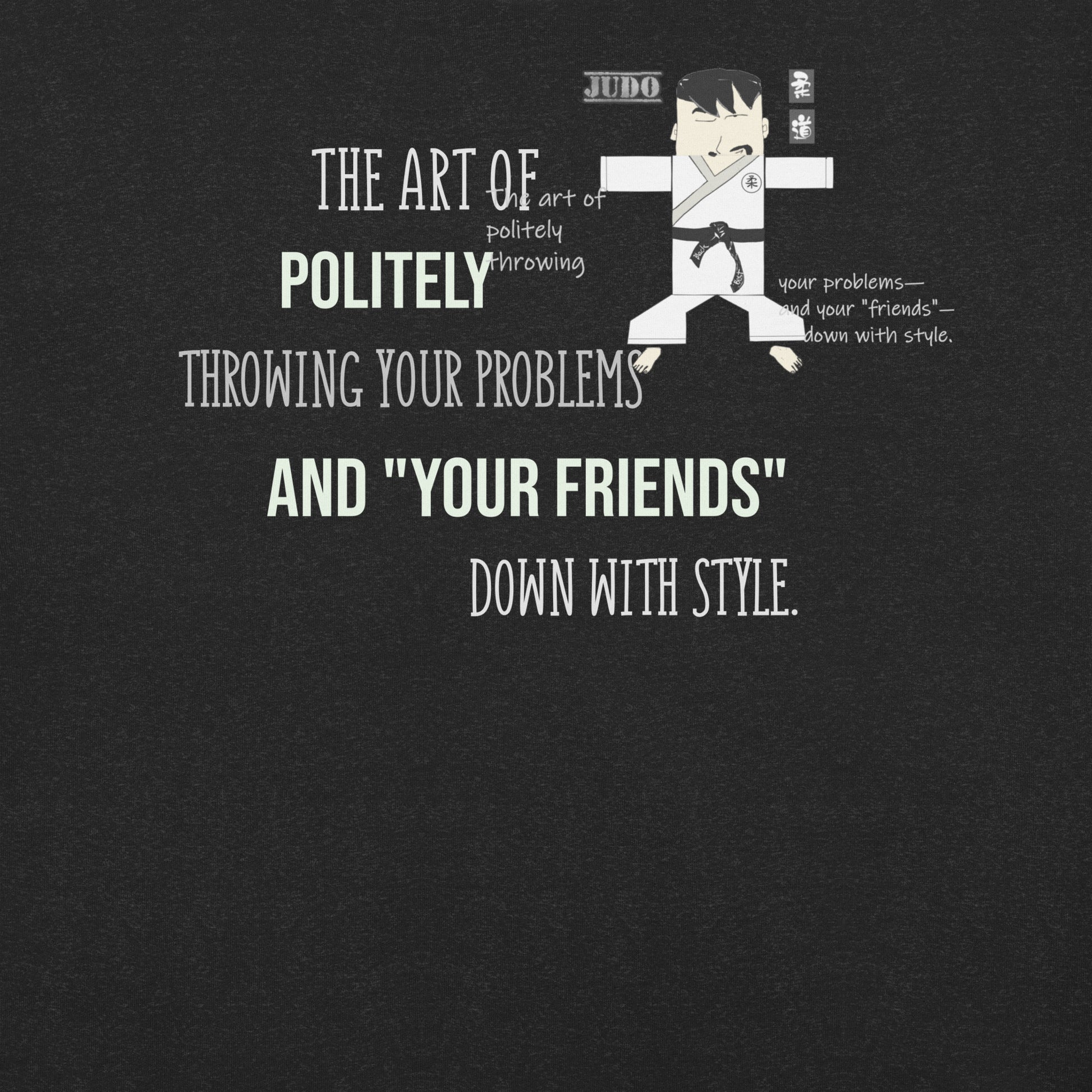 Master the art of comfort with this judo-themed tee that blends athletic style with humor. Crafted from soft, lightweight fabric with just enough stretch, it moves with you whether you're on the mat or out on the town. The witty judo graphic and clever pun deliver instant personality to your everyday rotation. Perfect for martial arts enthusiasts and anyone who appreciates a good laugh—this tee proves that style and substance can absolutely go hand in hand.