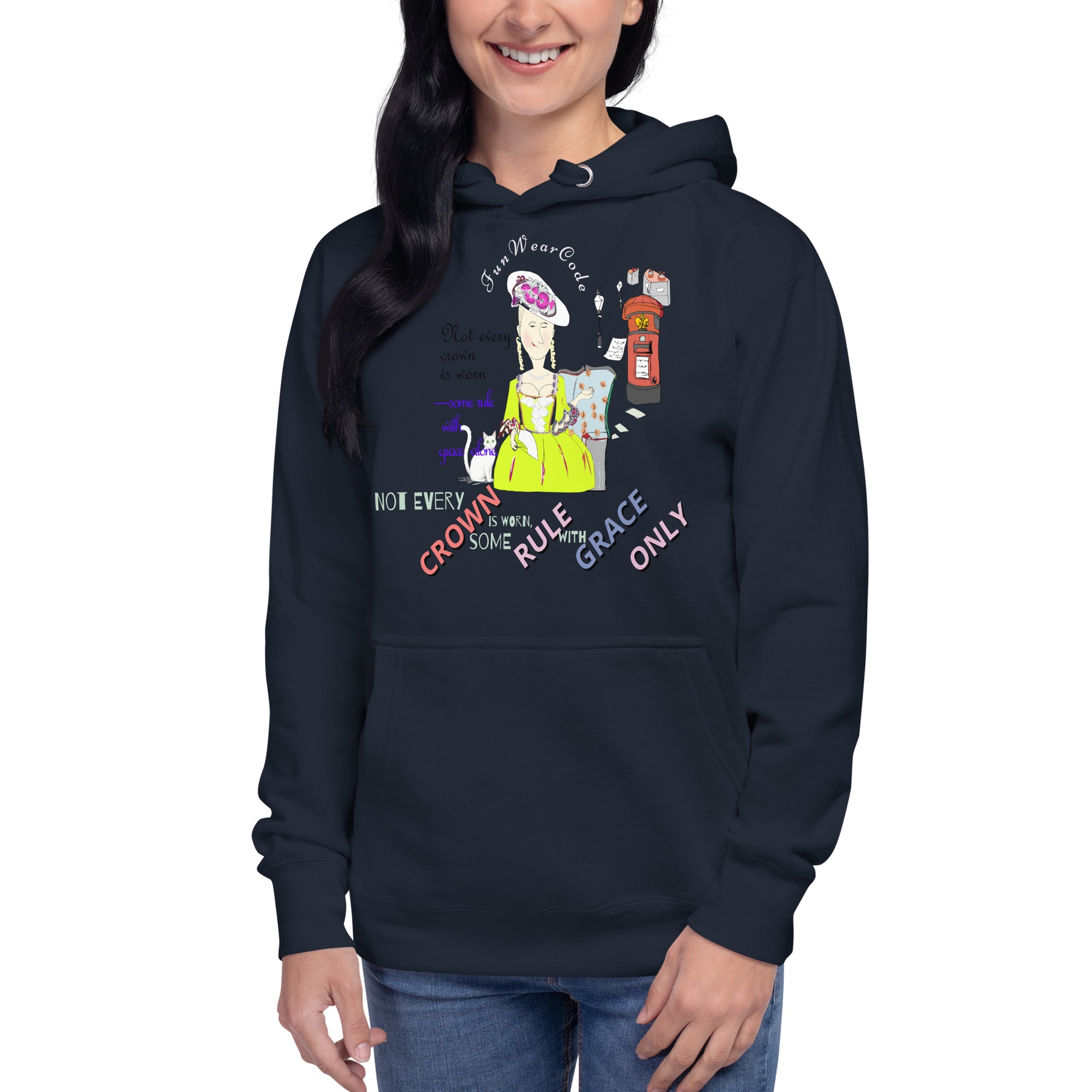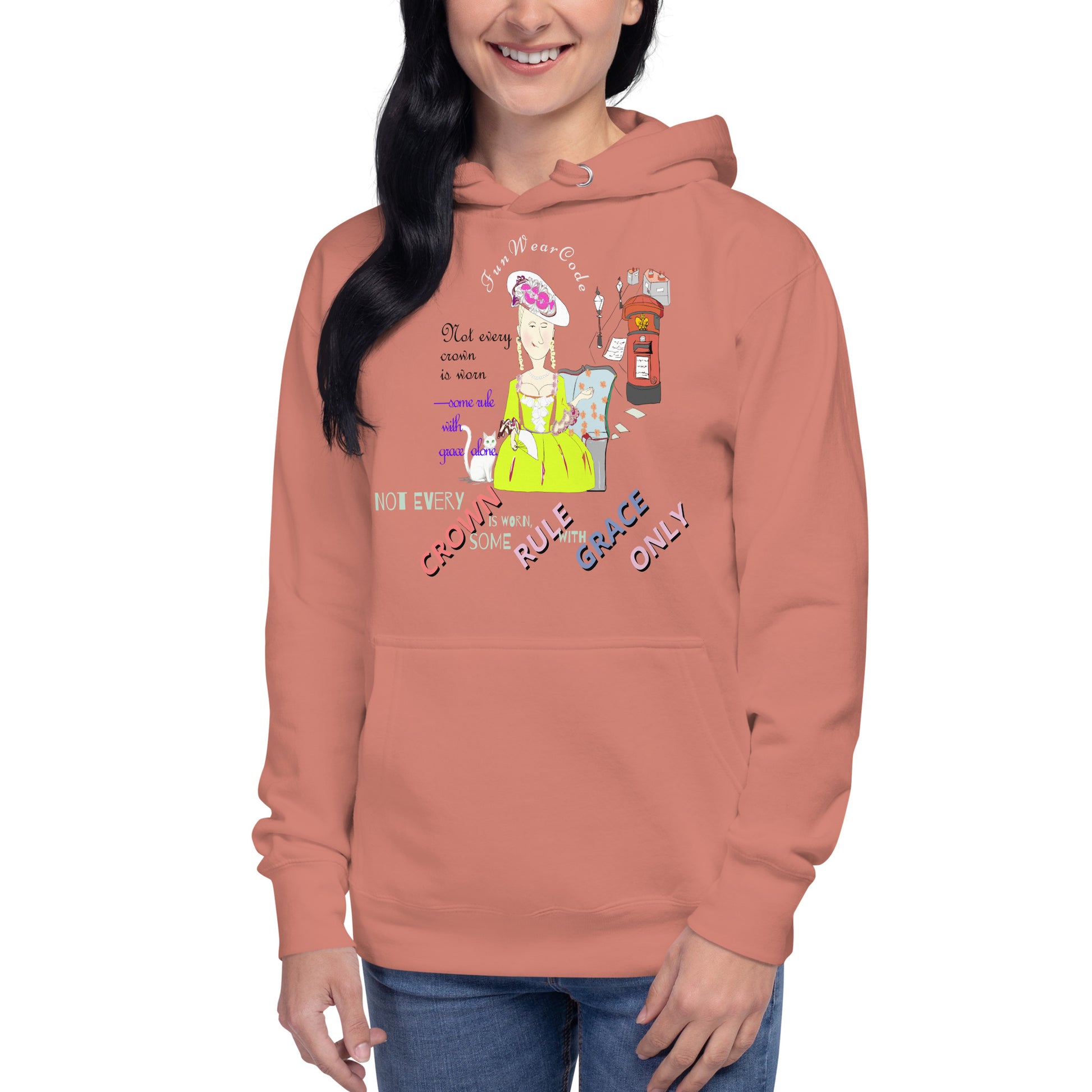 Discover the ultimate comfort with this exceptionally soft hoodie that blends vintage charm with modern streetwear style. Featuring a striking graphic of a 19th century English lady in period dress, this piece celebrates timeless elegance and quiet strength. The spacious pouch pocket keeps your hands warm while the cozy hood shields you from chilly weather. Perfect for everyday wear, this hoodie wraps you in softness while making a sophisticated style statement that reminds you of the power found in grace and confidence.