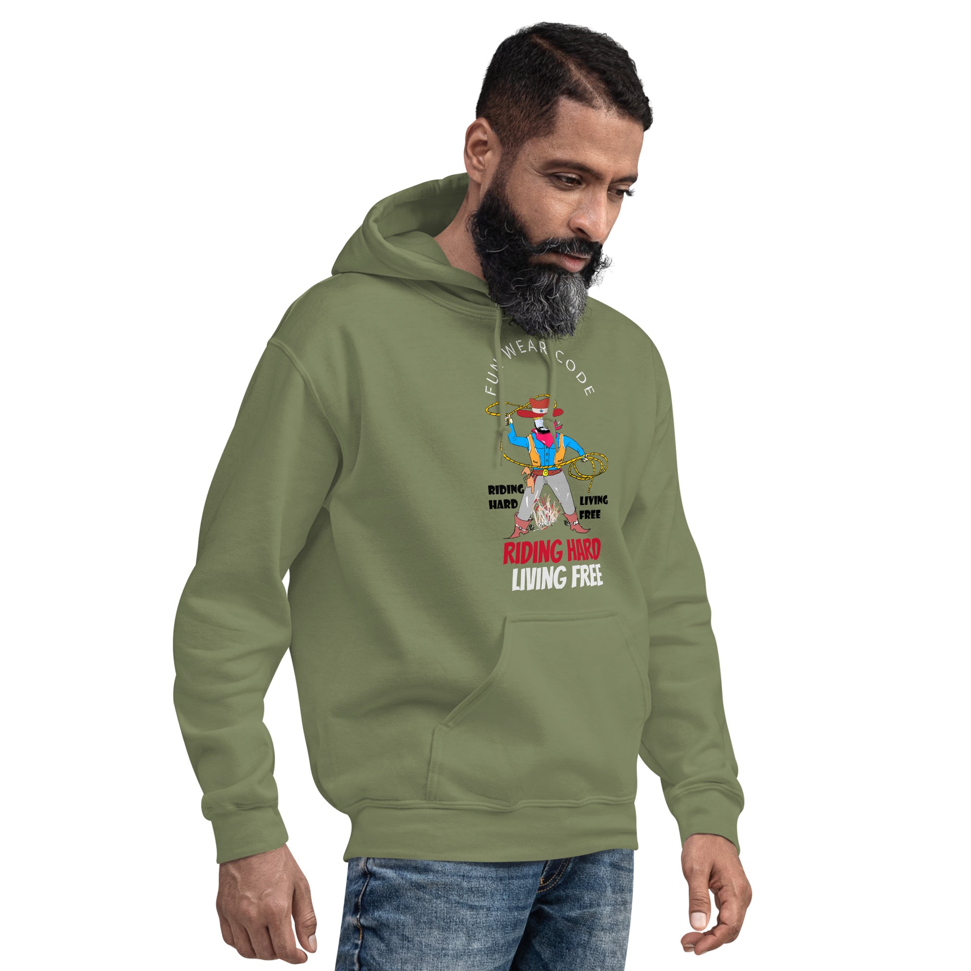 Wrap yourself in comfort with this unisex cowboy graphic hoodie—your new favorite piece for chilly nights. Crafted from soft, smooth fabric, it delivers the coziness you crave without compromising on style. The bold vintage western graphic brings playful personality to your wardrobe, blending classic wild west aesthetics with contemporary fashion sensibilities. Whether you're relaxing at home or stepping out casually, this hoodie offers the perfect balance of warmth and distinctive flair. A versatile essential that celebrates your unique style.