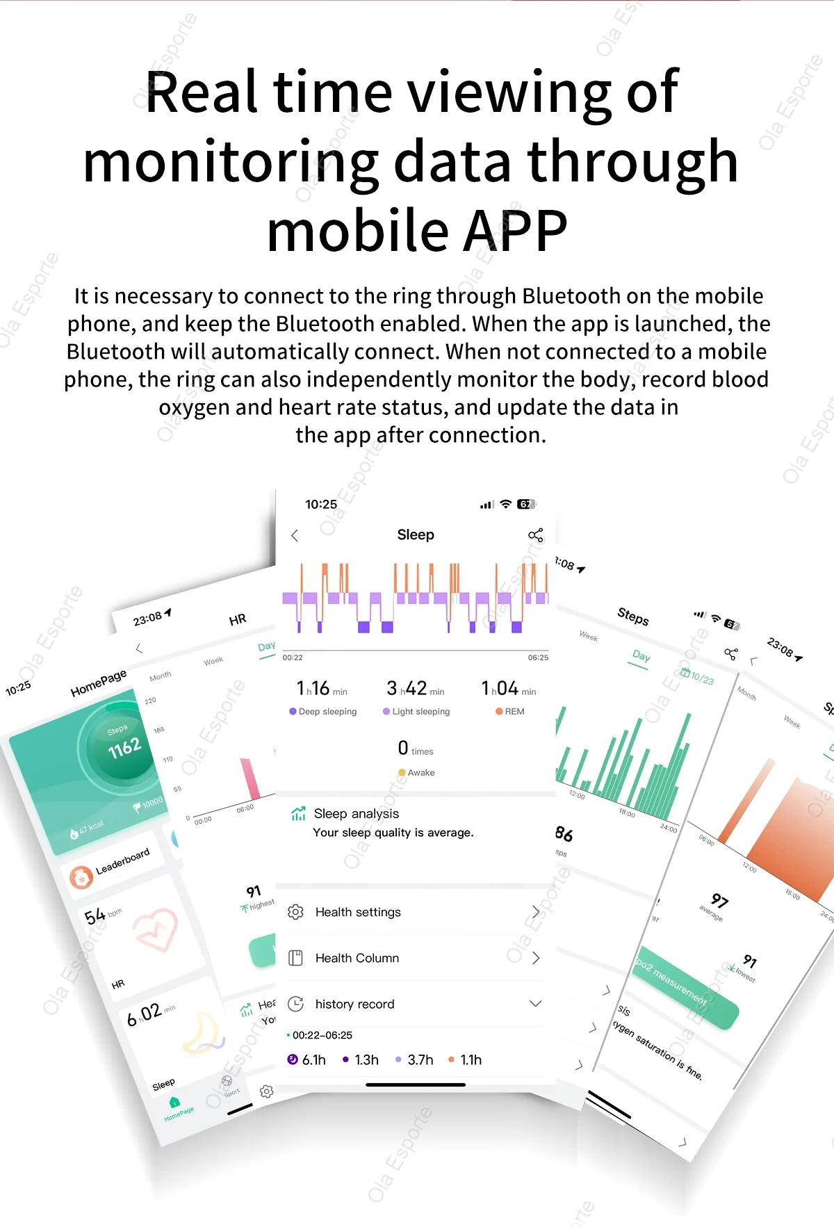 (Health Monitoring) Features a medical-calibrated optical HR sensor (GH3018) delivering >98% static accuracy vs. clinical-grade chest straps, validated per ISO 80601-2-61. Tracks continuous heart rate + HRV (Heart Rate Variability) — a key indicator of stress recovery and autonomic balance. App delivers actionable insights: “Recovery Score”, “Resting HR Trend”, and intelligent alerts for sustained elevated HR (>120 bpm for >10 min), not medical diagnosis.